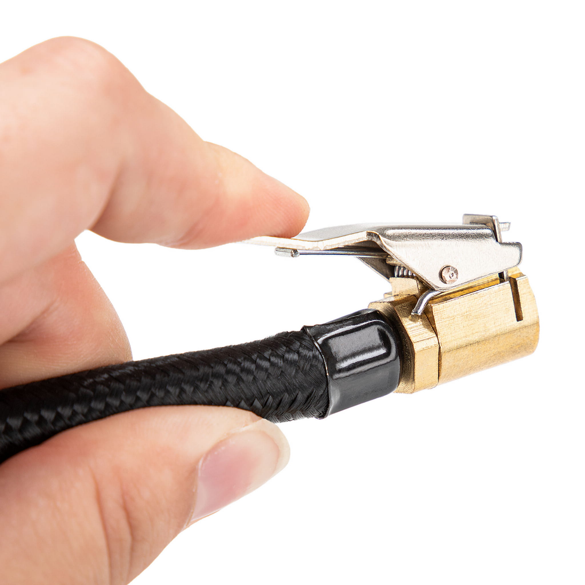 W ofercie znajduje się także elastyczny wąż o długości 14 cm oraz solidna mosiężna szybkozłączka do zaworów samochodowych.
