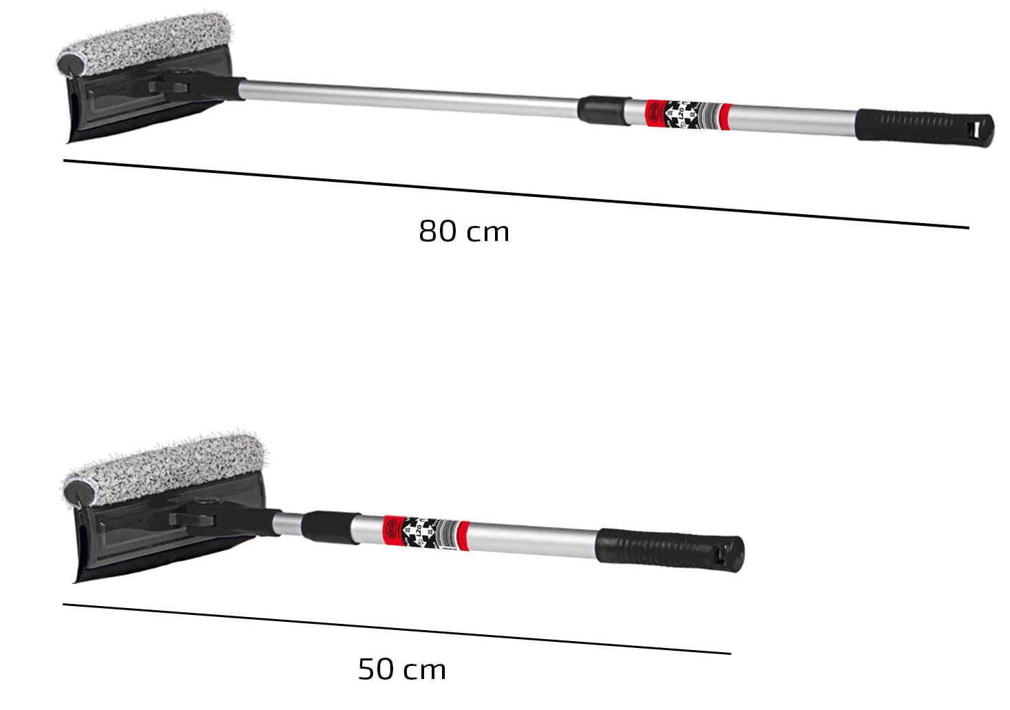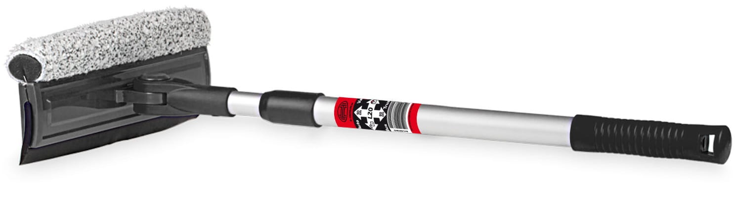 Środek do czyszczenia szyb można wysunąć, aby zaoszczędzić miejsce dzięki teleskopowemu wysięgnikowi o długości 50–80 cm, dlatego idealnie nadaje się do samochodów typu SUV, samochodów kempingowych, przyczep kempingowych, samochodów dostawczych i ciężarówek.