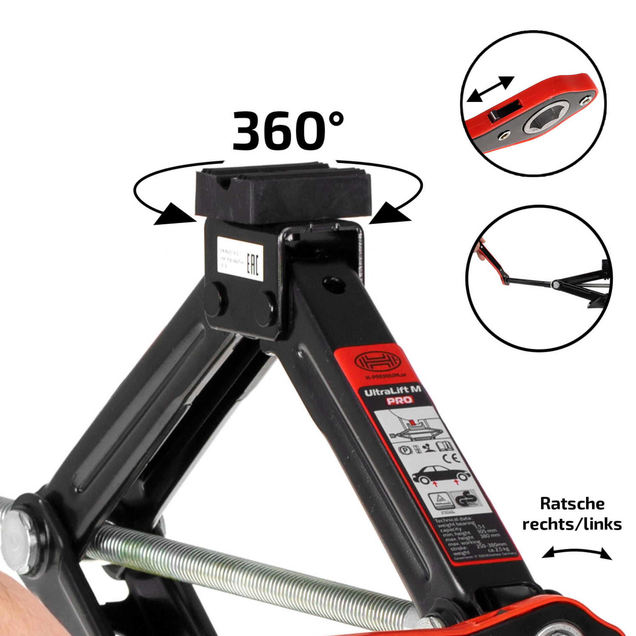 HEYNER UltraLift M PRO są wykonane ze stali malowanej proszkowo i charakteryzują się szczególnie solidną jakością, zwłaszcza pod względem odporności na zimno: model podnośnika nożycowego wytrzymuje temperatury do minus 50 stopni. Wyposażone w praktyczne obrotowe siodło z gumową podkładką i solidną korbą z rączką, gwarantują również łatwą obsługę i optymalną niezawodność.