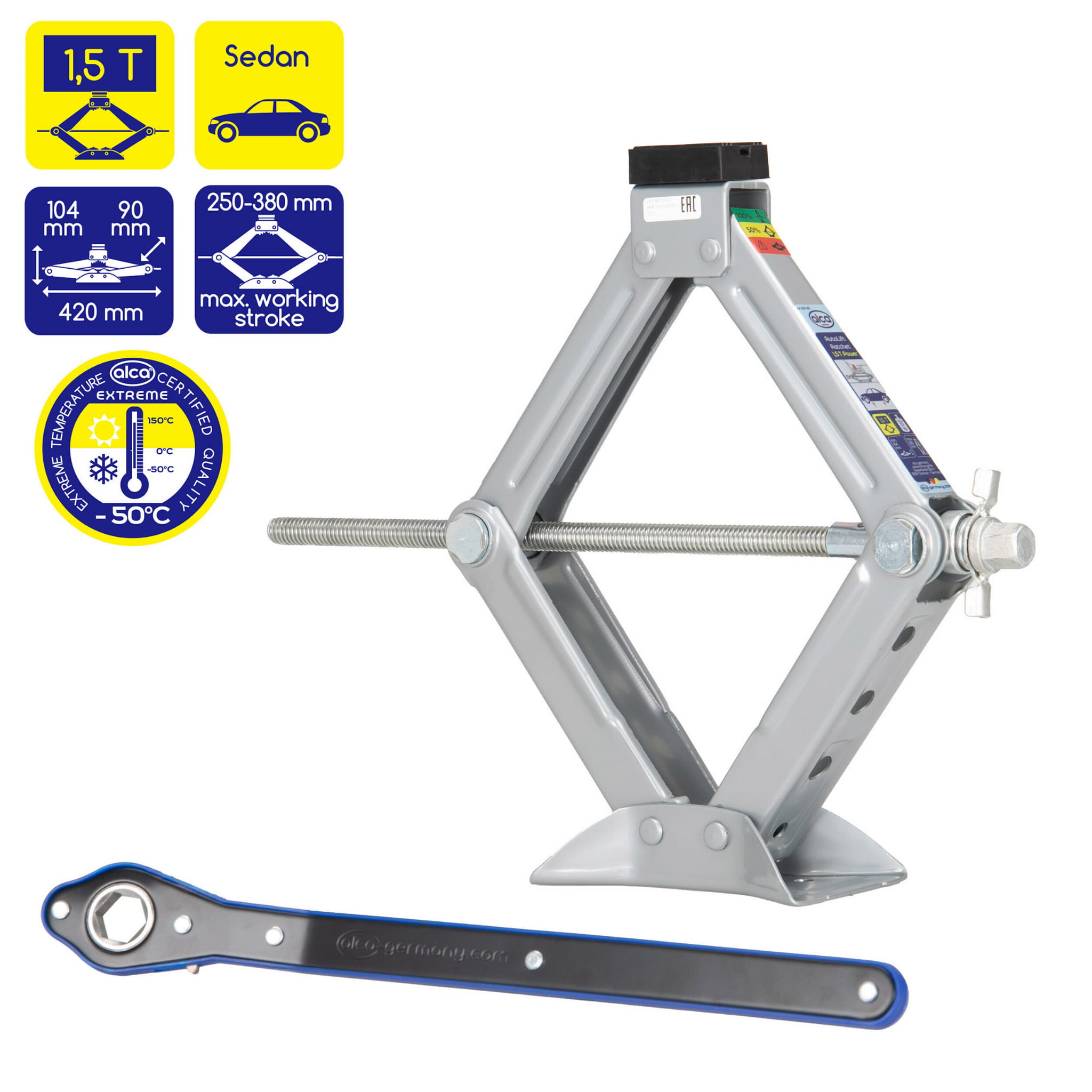 Podnośnik samochodowy alca 1,5t to bardzo lekki, ale wytrzymały podnośnik samochodowy, który dzięki wyjątkowo łatwej obsłudze idealnie nadaje się jako pomoc w razie awarii.
