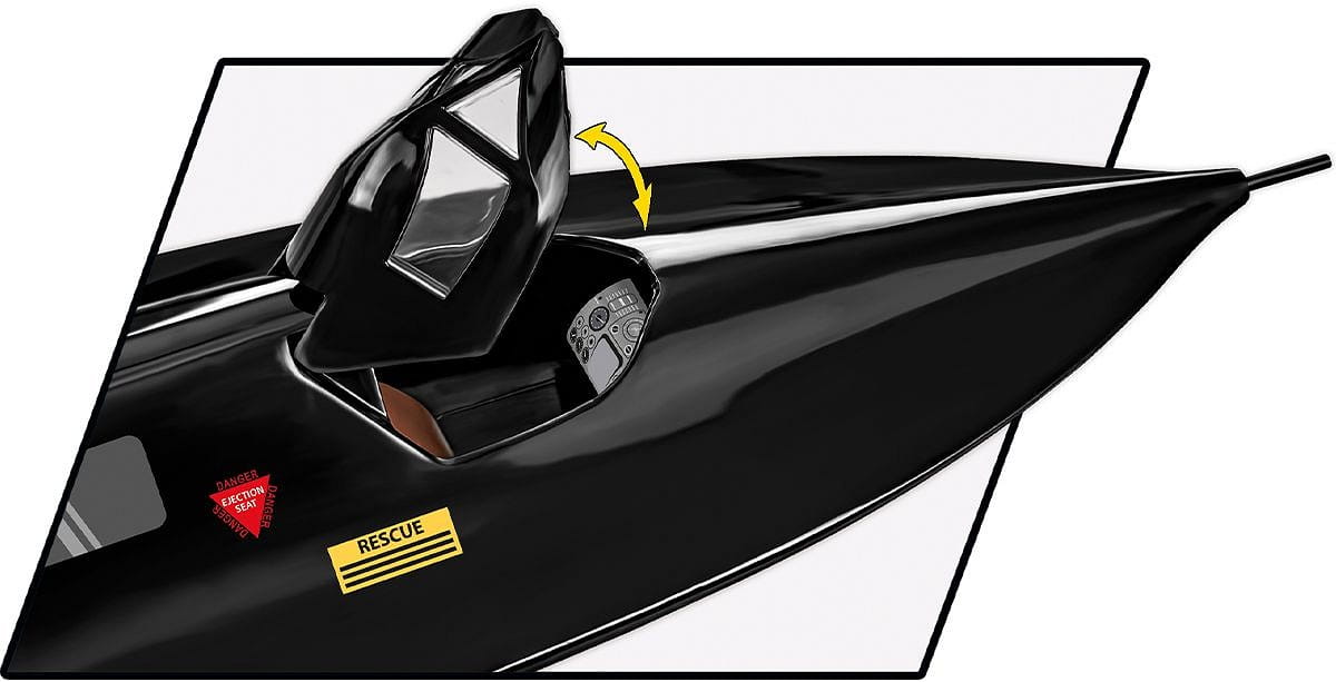 Z 1424 wysokiej jakości klocków zbudujesz legendarny samolot SR-71 w modelarskiej skali 1:48. Samolot ten pojawia się po raz pierwszy w ofercie firmy COBI. Zestaw został starannie zaprojektowany, dlatego jego budowa przyniesie dużo satysfakcji wymagającemu budowniczemu. Odczepiane podwozie, ruchome lotki skrzydeł i otwierany kokpit to tylko niektóre lotnicze funkcjonalności, które odkryjesz w czasie budowy. Pokryty został trwałymi nadrukami przedstawiającymi oznaczenia US Air Force. Dodatkowo samolot posiada oznaczenia NASA dostępne tylko w wydaniu Executive Edition. Oprócz tego samolot ma dwa potężne płomienie wydobywające się z potężnych silników Pratt-Whitney. Dodatkowo zestaw zawiera figurki dwóch pilotów: Pilota USAF oraz pilota NASA. Ubrani są w charakterystyczne kombinezony z kaskami przeznaczonymi do latania na bardzo dużych wysokościach.