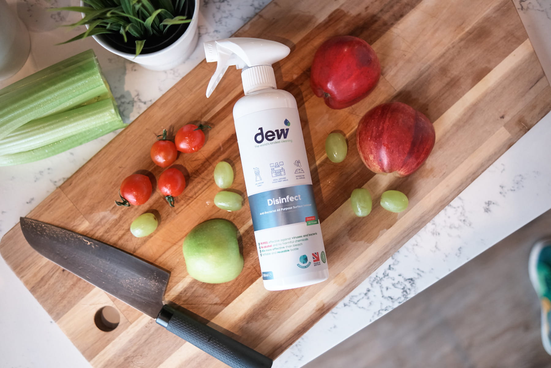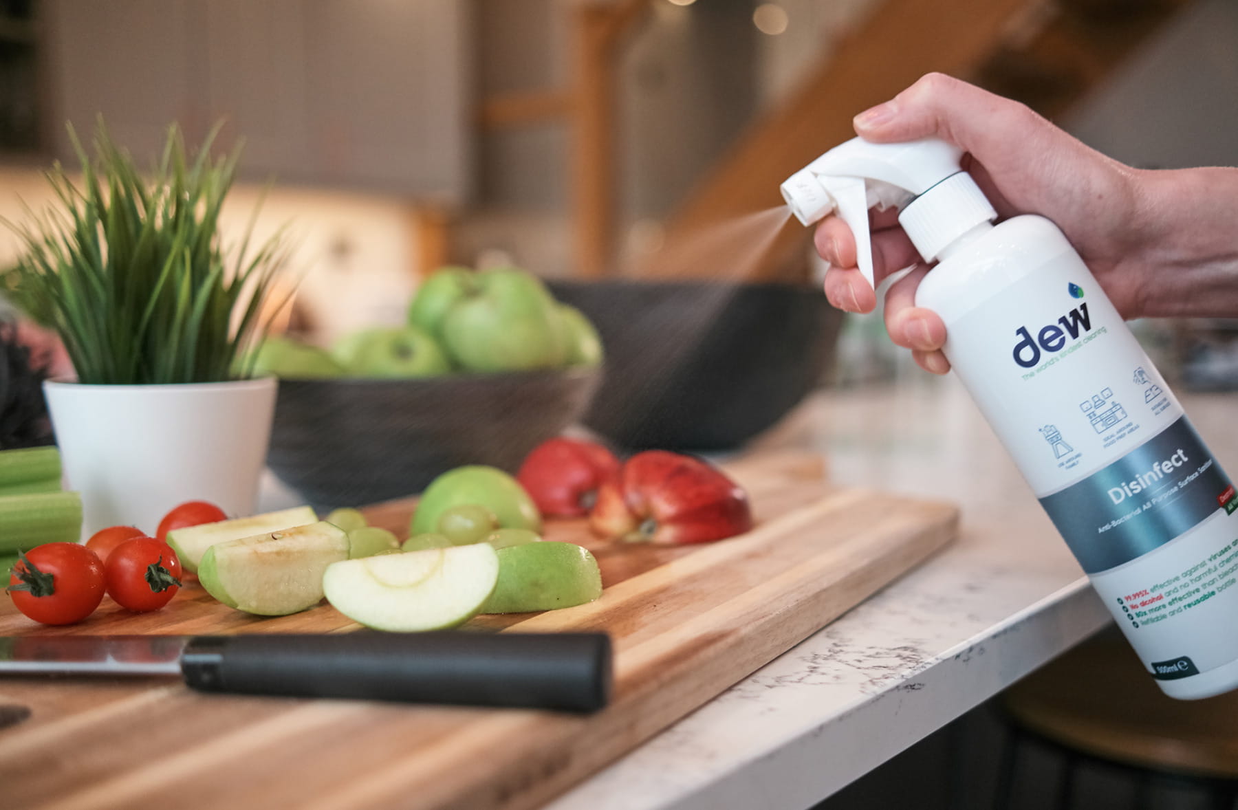 Nadaje się do wszystkich powierzchni w kuchni i łazience, po prostu spryskaj i pozostaw na minutę, a następnie wytrzyj do czysta lub pozostaw do naturalnego wyschnięcia.