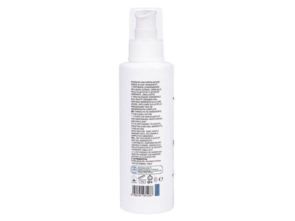 Bezpieczna emulsja dla dzieci o podwójnym działaniu. Dzięki zawartym składnikom ( olej z miodli indyjskiej, Aloe Vera) nawilża skórę i jednocześnie chroni ją przed utratą nawilżenia. Nadaje skórze elastyczność i jedwabistość, zmiękcza skórę chroniąc jej naturalną barierę hydrolipidową. Emulsja okazuje się być nieprzyjemna dla owadów, tworząc naturalną barierę dla ich działania.