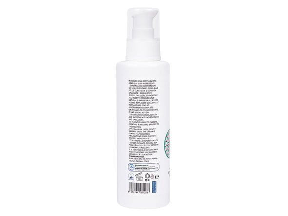Bezpieczna emulsja dla dzieci o podwójnym działaniu. Dzięki zawartym składnikom ( olej z miodli indyjskiej, Aloe Vera) nawilża skórę i jednocześnie chroni ją przed utratą nawilżenia. Nadaje skórze elastyczność i jedwabistość, zmiękcza skórę chroniąc jej naturalną barierę hydrolipidową. Emulsja okazuje się być nieprzyjemna dla owadów, tworząc naturalną barierę dla ich działania.