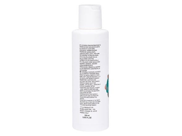 Sposób użycia: Stosować codziennie do mycia bądź nawilżania ciała. Niewielką ilość emulsji nanieść na dłoń, delikatnymi ruchami umyć lub nawilżyć całe ciało. Emulsję można również dodać bezpośrednio do wanny napełnionej wodą. INCI: Aqua, Oryza Sativa Starch*, Aloe Barbadensis Leaf Juice*, Xanthan Gum, Sodium Phytate, Sodium Benzoate, Potassium Sorbate, Parfum**. *pochodzenie z gospodarstw ekologicznych **bez alergenów (alergen free) Produkt włoskiej marki Bubble&CO która w stylu retro przywraca i wzmacnia tradycję, oferując produkty do higieny i pielęgnacji dziecka i całej rodziny w oparciu o naturalne certyfikowane składniki, pochodzące całkowicie z rolnictwa ekologicznego. Produkty zostały stworzone tak, aby zaspokoić potrzeby skóry w każdym wieku, od narodzin do 100 lat!