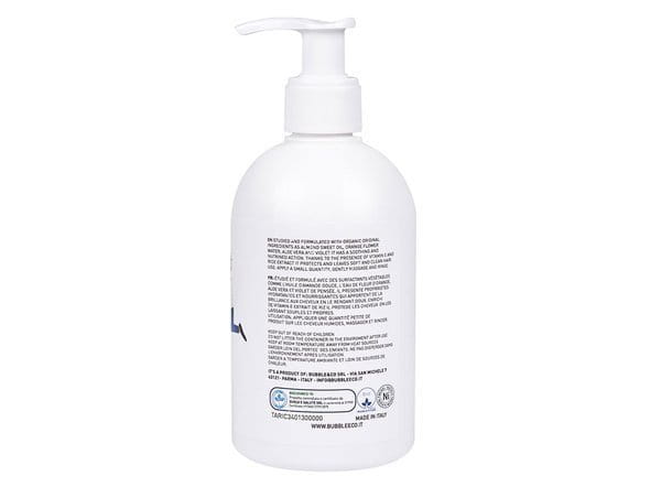 Sposób użycia: Niewielką ilość szamponu nanieść na dłoń, następnie nanieść go na mokre włosy, masować do uzyskania piany. Po umyciu włosów szampon dokładnie spłukać wodą. INCI: Aqua, Ammonium Lauryl Sulfate, Citrus Aurantium Amara Flower Water*, Disodium Cocoamphodiacetate, Cocamidopropyl Betaine, Viola Tricolor* Extract, Oryza Sativa* Extract, Prunus Amygdalus Dulcis Oil, Aloe Barbadensis Leaf Extract*, Sodium Cocoabutteramphoacetate, Inulin, Citric Acid, Sodium Gluconate, Benzyl Alcohol, Sodium Benzoate, Potassium Sorbate, Parfum**. *pochodzenie z gospodarstw ekologicznych **perfum hypoalergiczny Produkt włoskiej marki Bubble&CO która w stylu retro przywraca i wzmacnia tradycję, oferując produkty do higieny i pielęgnacji dziecka i całej rodziny w oparciu o naturalne certyfikowane składniki, pochodzące całkowicie z rolnictwa ekologicznego. Produkty zostały stworzone tak, aby zaspokoić potrzeby skóry w każdym wieku, od narodzin do 100 lat!