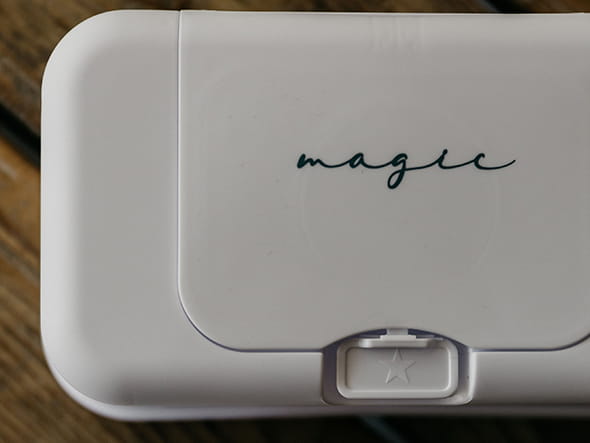 - posiada elastyczne dno, pozwalające w prosty sposób napełniać pojemnik nowymi chusteczkami