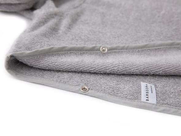Bardzo delikatny, chłonny i miły w dotyku ręcznik kąpielowy z kapturkiem typu poncho w kolorze popielatym wykonany jest w 100% z frotte bambusa organicznego. Posiada praktyczny kapturek z uroczymi uszami, który można założyć dziecku na główkę. Ręcznik obszyty jest lamówką, pod pachami posiada zatrzaski umożliwiające zapięcie go z boku. Ponczo jest wielofunkcyjne, może służyć jako ręcznik z kapturem chroniący przed promieniowaniem UV oraz wiatrem na plaży. Poncho dla maluszka idealnie sprawdzi się jako ręcznik kąpielowy w domu czy na basenie. To okrycie kąpielowe jest praktyczne, wygodne i komfortowe.