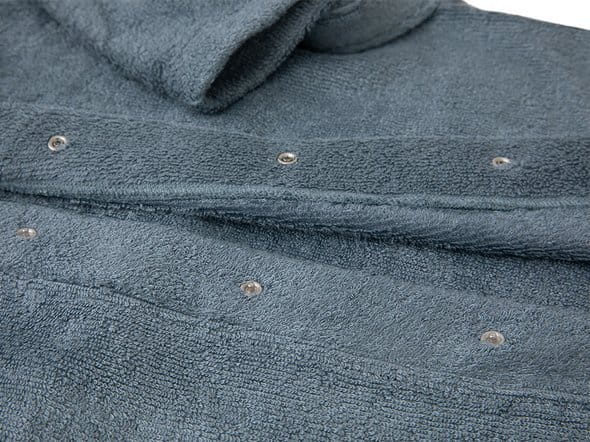 Niezwykle delikatny, chłonny i bardzo miły w dotyku bambusowy szlafrok dziecięcy w kolorze niebieskim wykonany jest w 100% z frotte bambusa organicznego. Posiada duży kaptur z uroczymi uszami, który umożliwia łatwe i wygodne wytarcie dziecku mokrych włosów. Szlafrok dla maluszka w całości obszyty jest lamówką, posiada wygodne wiązanie i zatrzaski, dzięki którym szlafrok można wygodnie zapiąć przez całą długość. Jest wielofunkcyjny, może służyć jako ręcznik z kapturem, ręcznik kąpielowy w domu czy na basenie. Idealnie sprawdzi się również na plaży. Jest praktyczny, wygodny i komfortowy.