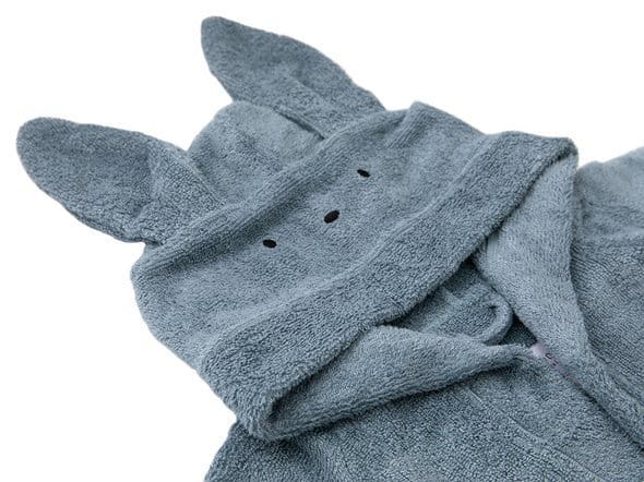 Niezwykle delikatny, chłonny i bardzo miły w dotyku bambusowy szlafrok dziecięcy w kolorze niebieskim wykonany jest w 100% z frotte bambusa organicznego. Posiada duży kaptur z uroczymi uszami, który umożliwia łatwe i wygodne wytarcie dziecku mokrych włosów. Szlafrok dla maluszka w całości obszyty jest lamówką, posiada wygodne wiązanie i zatrzaski, dzięki którym szlafrok można wygodnie zapiąć przez całą długość. Jest wielofunkcyjny, może służyć jako ręcznik z kapturem, ręcznik kąpielowy w domu czy na basenie. Idealnie sprawdzi się również na plaży. Jest praktyczny, wygodny i komfortowy.