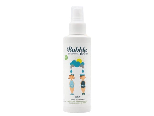 Woda oczyszczająca Bubble&Co to delikatne a zarazem wszechstronne rozwiązanie do codziennego oczyszczania i odświeżania skóry dzieci i niemowląt. Produkt oparty jest wyłącznie na czystym organicznym soku z aloesu, białkach pszenicy, oleju ryżowym, ekstraktach z rumianku, nagietka i malwy. Oczyszcza eliminując zanieczyszczenia, a jednocześnie działa zmiękczająco, nawilżająco i łagodząco. Można nim oczyszczać całe ciało, dłonie, twarz, stopy a także okolice intymne dziecka bez konieczności spłukiwania. Woda oczyszczająca Bubble&Co bardzo szybko się wchłania, pozostawiając na skórze uczucie przyjemnego odświeżenia. Posiada delikatny, niedrażniący zapach.