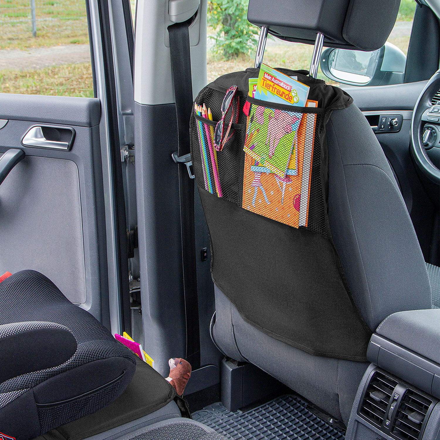 - 3 kieszenie zapewniają miejsce na zabawki, książki lub przekąski