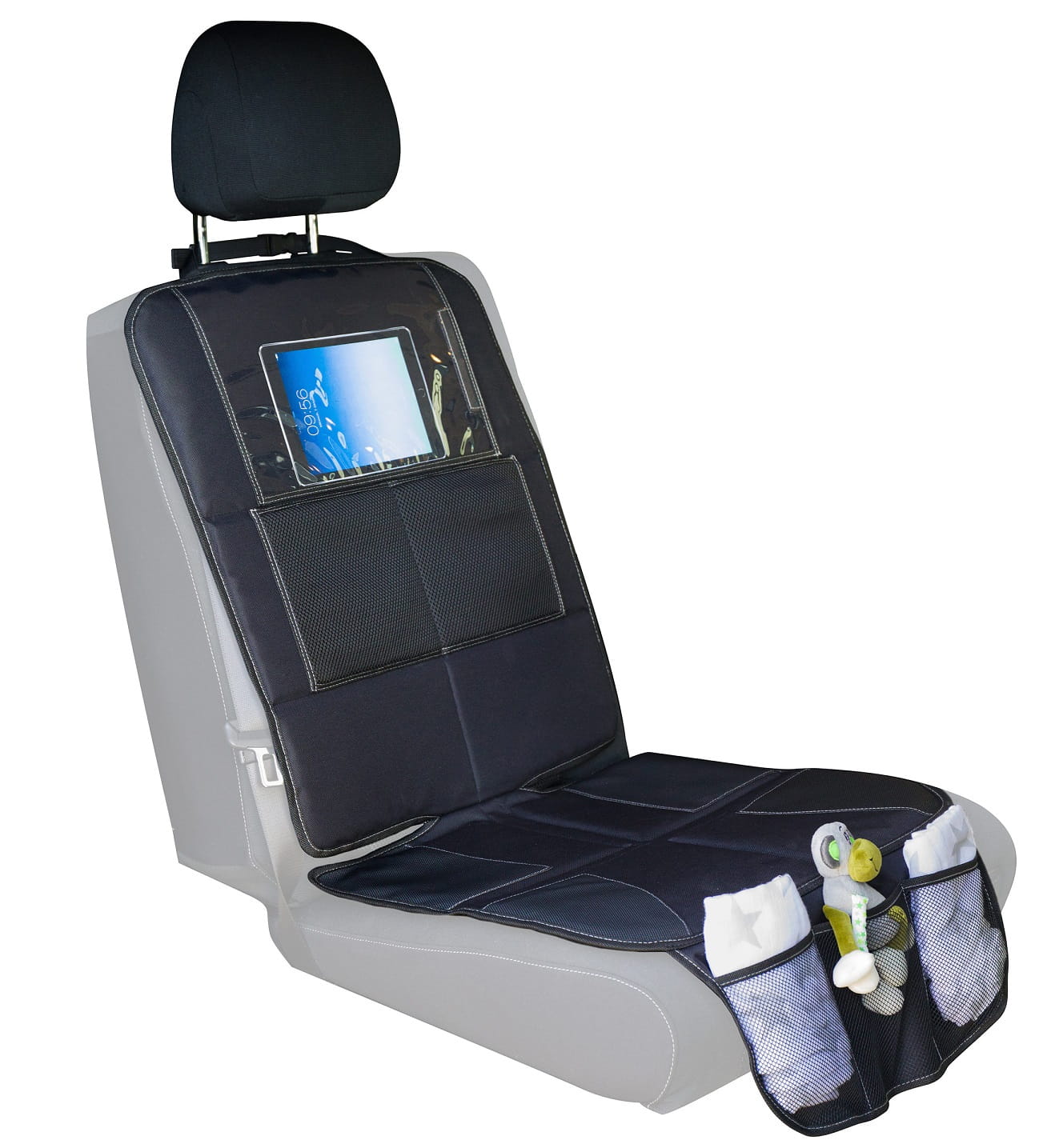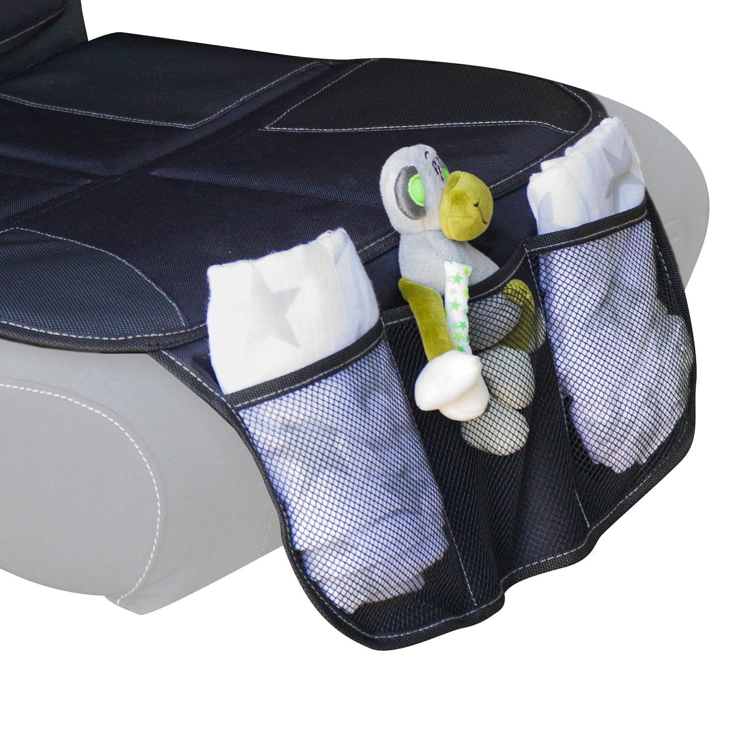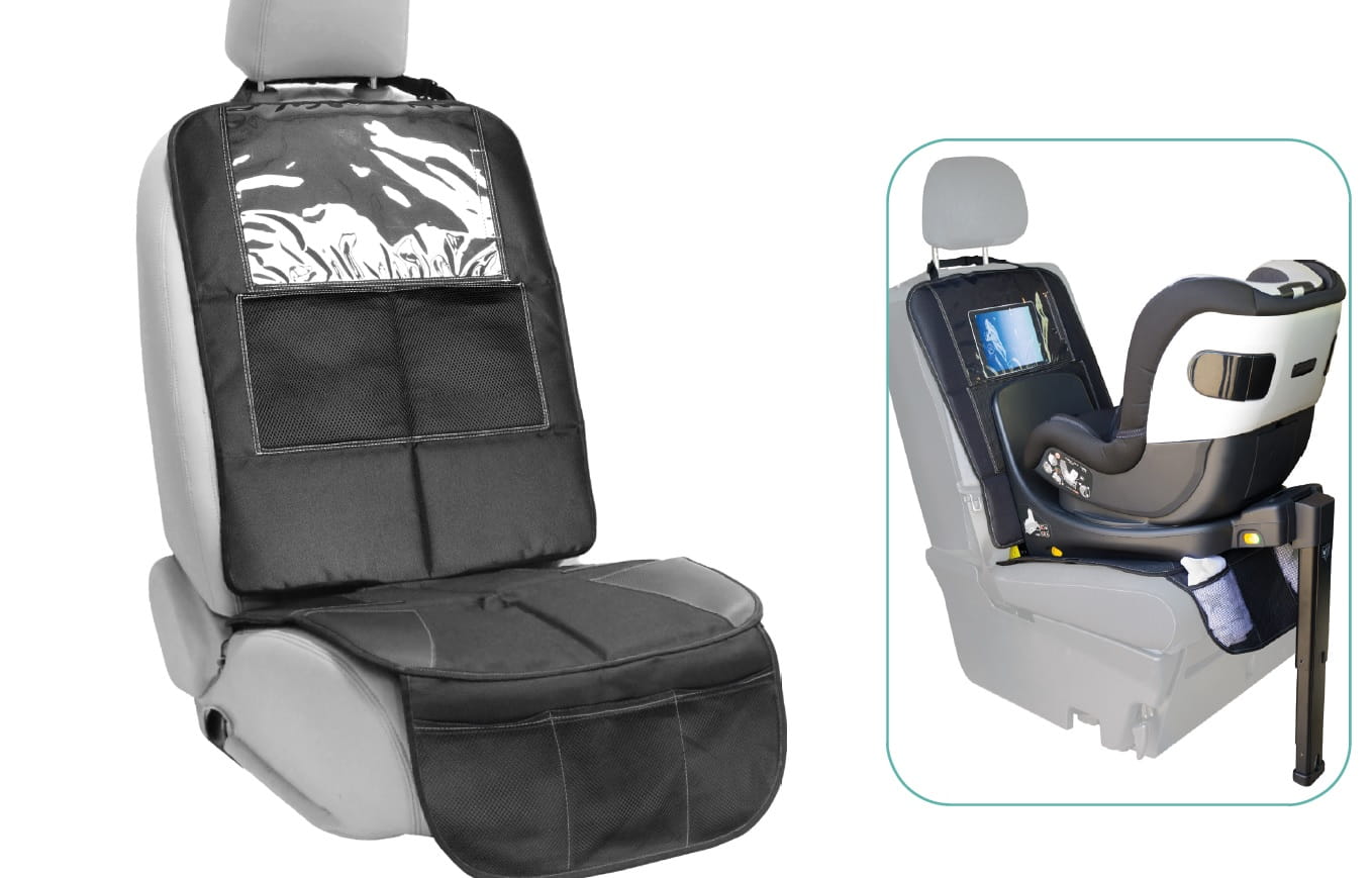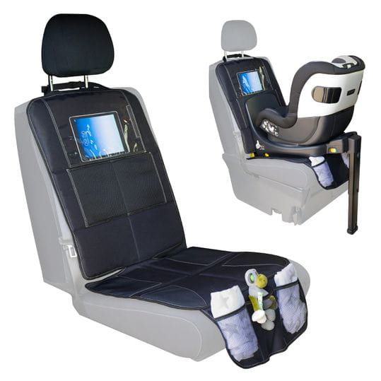 Dzięki wycięciom na podkładce można stosować pod foteliki dziecięce z Isofix. Praktyczna kieszeń na przybory w dolnej części sprawia, że mata jest idealna.