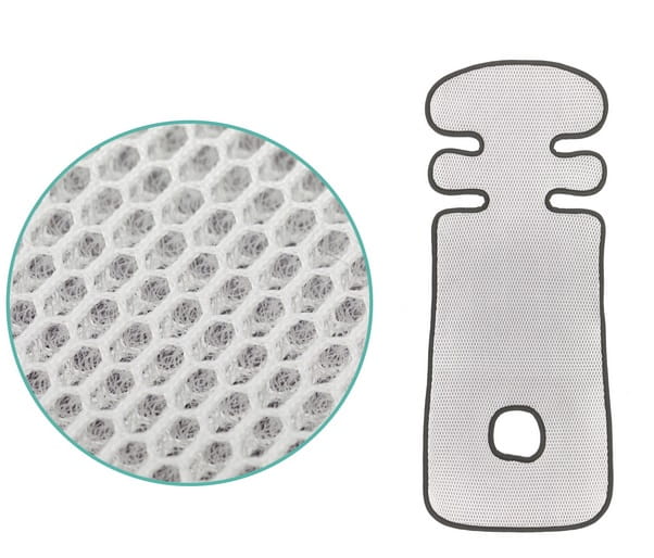 Struktura plastra miodu 3D z tyłu maty umożliwia cyrkulację powietrza, zapewniając przyjemny klimat podczas siedzenia. Tkanina frotte z przodu zapewnia wygodne siedzisko dla Twojego dziecka. Jeśli wyściółka trochę się zabrudzi, nie martw się, ponieważ można ją łatwo zdjąć i wyprać.