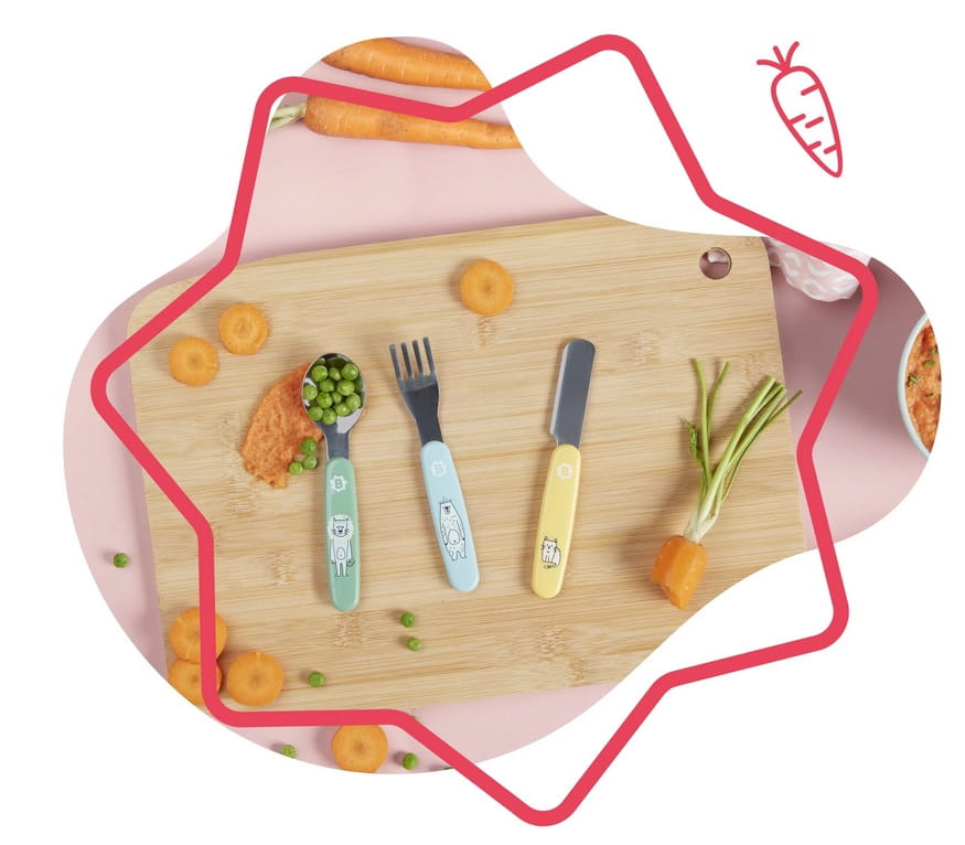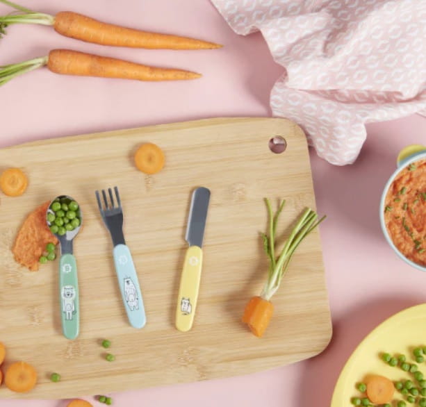 Metalowe sztućce dla niemowląt Badabulle - od 12 miesięcy