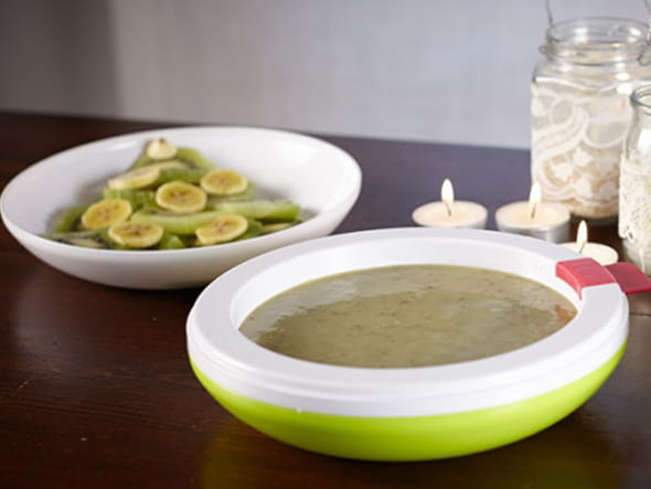 - 2 naczynia w 1 - miseczka + pokrywka służąca jako talerzyk na drugie danie bądź przekąski
