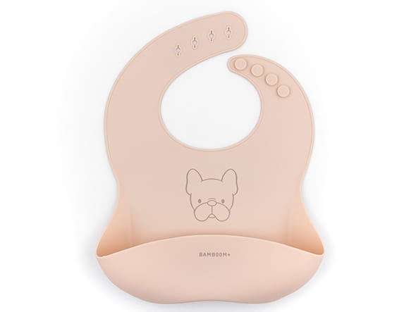Śliniak silikonowy z kieszonką różowy 6m+ BAMBOOM