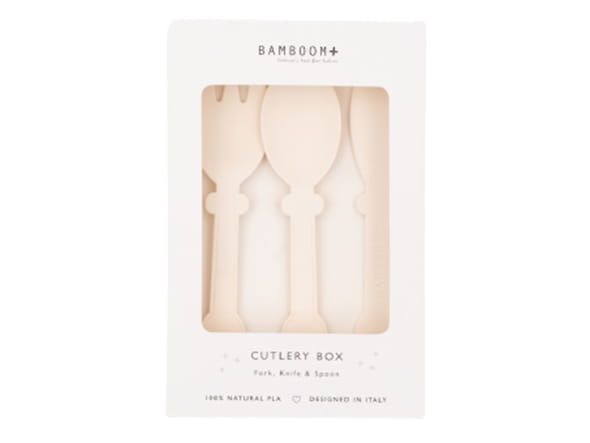 Zestaw sztućców dla dzieci wykonany z bioplastiku, przyciągający uwagę nowoczesnym designem i cudnym pastelowym kolorem. Sztućce dla dziecka Bamboom to idealne sztućce do nauki samodzielnego jedzenia. Sztućce dziecięce są zaokrąglone, mają ergonomiczny kształt chwytów, który pozwala dziecku w łatwy i prawidłowy sposób trzymać sztućce w rączce. Materiał, z którego wykonane są sztućce to 100% PLA (bioplastik), powstający z odpadów różnych produktów roślinnych, m.in. kukurydzy, ziemniaków czy buraków cukrowych, a więc całkowicie biodegradowalny i kompostowalny. W zestawie znajduje się nóź, widelec i łyżka!