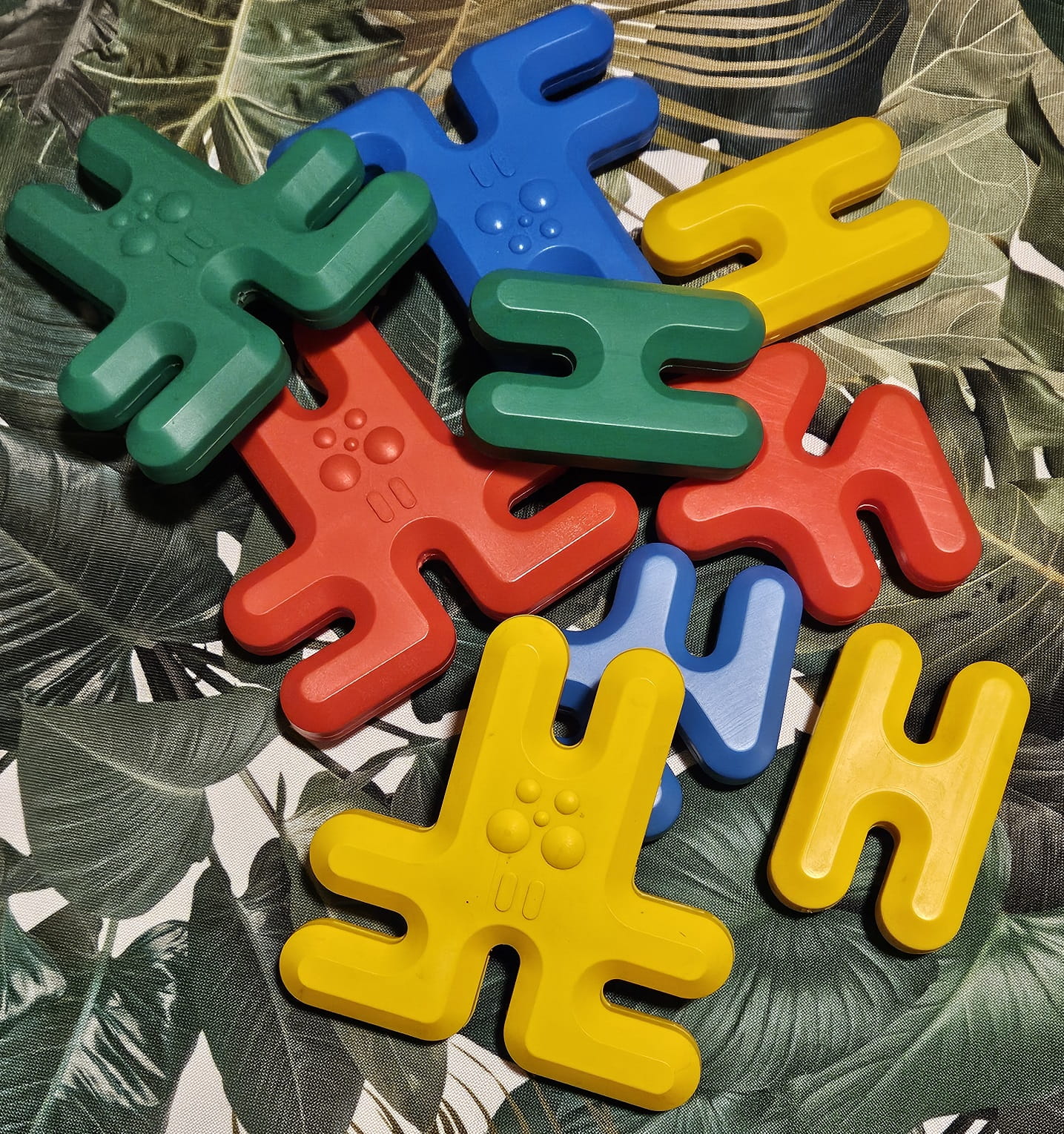 Zestaw w worku Domino zawiera 40 elementy, występujące w 3 odmiennych kształtach, oraz w 4 kolorach których łączenie pozwala na uzyskanie nieograniczonej liczby kombinacji.