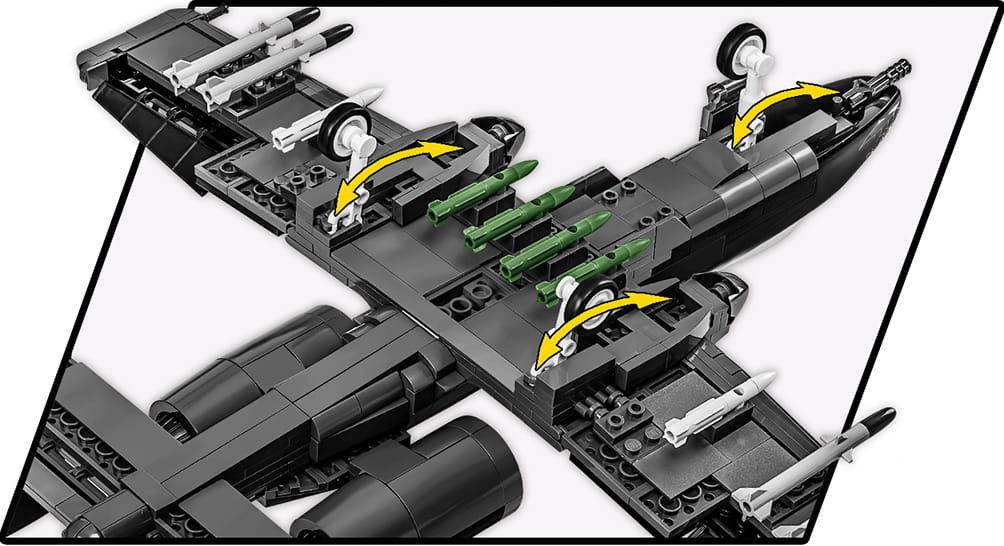 Z 633 klocków konstrukcyjnych COBI wybudujesz niesamowity samolot szturmowy armii USA, A-10 THUNDERBOLT II™ WARTHOG®. Zestaw został zaprojektowany z dbałością o detale i jest pokryty wyłącznie trwałymi nadrukami. Model został przygotowany w modelarskiej skali 1:48 na licencji megakoncernu zbrojeniowego Northrop Grumman. W zestawie znajduje się uproszczona wersja minifigurki pasująca do kokpitu w skali 1:48.