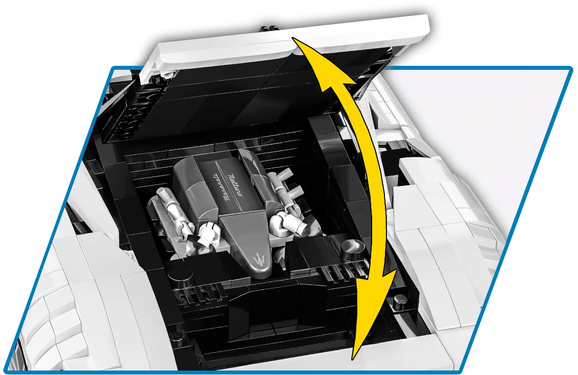 Maserati MC20 zostało wydane na licencji włoskiego producenta samochodów sportowych Maserati. Klockowy model opracowany w rewelacyjnej skali 1:12 mierzy aż 39 cm długości i składa się z 2269 elementów. Otwierane do góry drzwi, skrętne koła, które można obracać za pomocą działającego układu kierowniczego, odwzorowany z klocków silnik oraz specjalnie zaprojektowane na potrzeby tego modelu elementy to tylko część zalet tego zestawu. Za pomocą nadruków oraz starannie dobranych elementów zostały odwzorowane elementy stylistyczne, oraz wnętrze.