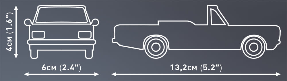 Wymiary modelu (dł x szer x wys): 13,2 cm (5.2”) x 6 cm (2.4") x 4 cm (1.6")