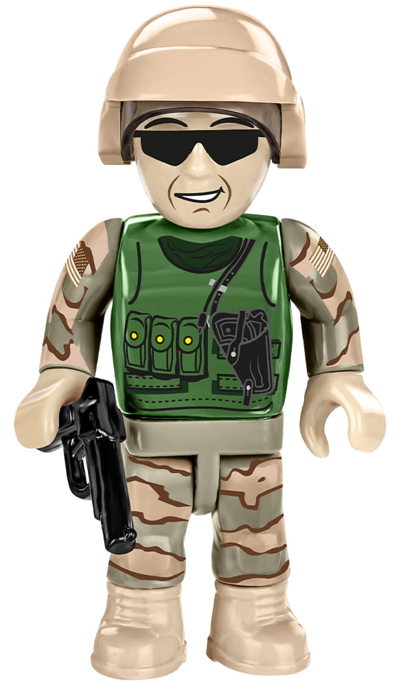 Z zestawu klocków konstrukcyjnych COBI wybudujesz czołg Abrams w wersji M1A2 opracowany na licencji General Dynamics Land Systems. Model został odwzorowany w rewelacyjnej skali 1:35. Najnowsza wersja tego topowego czołgu to jeszcze bardziej szczegółowo odwzorowane detale. Stało się to możliwe dzięki zastosowaniu nowych klocków ze wciąż rosnącego katalogu elementów, które tworzy firma COBI. Na modelu znajdują się wyłącznie wysokiej jakości nadruki, które nie ścierają się podczas użytkowania. Pojazd posiada działający gąsienicowy układ bieżny oraz otwierane włazy, w których umieścisz załogantów. Wieża pojazdu i lufa są ruchome. Pod zdejmowaną klapą serwisową znajduje się odwzorowany z klocków silnik. Czołg Abrams został wzbogacony o dodatki takie jak: klockowy worek, zapasowe gąsienice, amunicję oraz dwa karabiny maszynowe. Otwierana klapa umożliwia dostęp do odtworzonego z klocków silnika. Do zestawu dołączona jest bardzo ciekawa figurka amerykańskiego czołgisty wyposażona w pistolet osobisty.