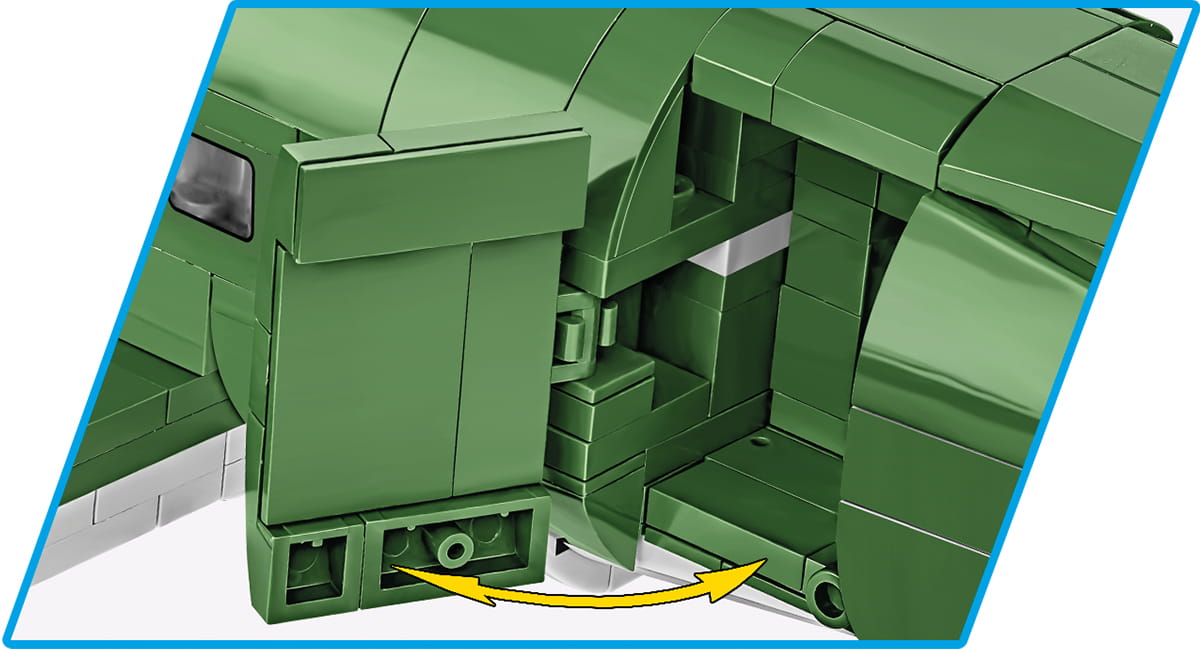 Model z klocków konstrukcyjnych COBI przedstawiający amerykański samolot transportowy Douglas™ C-47 Skytrain (Dakota) został starannie opracowany w skali 1:48 i posiada ruchome elementy takie jak obrotowe koła z gumowymi oponami, ruchome śmigła i lotki skrzydeł oraz otwierane drzwi. Na wielu klockach znajdują się trwałe nadruki, które nie ścierają się nawet w trakcie intensywnego użytkowania. Do zestawu dołączone są dwie figurki amerykańskich żołnierzy: pilota i spadochroniarza ze 101 Dywizji Powietrznodesantowej “Screaming Eagles” z charakterystycznym irokezem na głowie. W komplecie znajduje się również tabliczka z nazwą samolotu oraz wzmocniona klockowa podstawka ekspozycyjna z przezroczystymi trzpieniami.