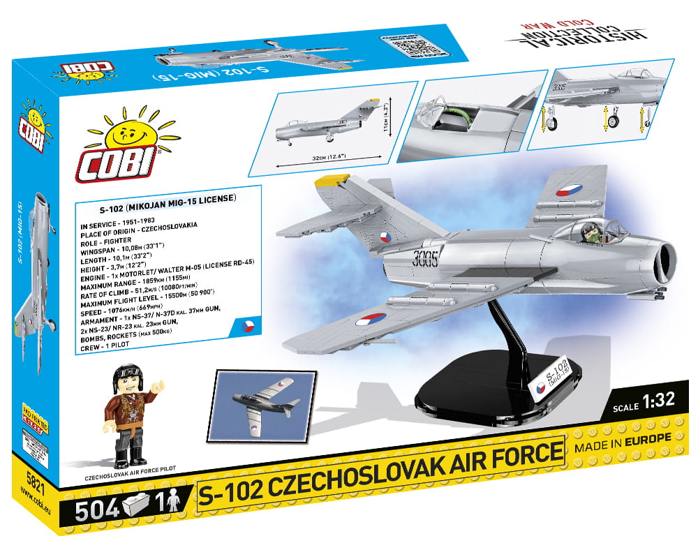 został zaprojektowany w modelarskiej skali 1:32 i składa się z 504 wysokiej jakości elementów. Wszystkie oznaczenia i napisy znajdujące się na modelu to nadruki, które nie ścierają się w trakcie użytkowania. Zestaw posiada ruchome elementy takie jak koła oraz otwierana kabina, w której możemy umieścić rewelacyjną figurkę czechosłowackiego pilota. Do zestawu dołączona jest podstawka ekspozycyjna zawierająca tabliczkę z nazwą zestawu i oznaczeniem przynależności państwowej. Dzięki intuicyjnej instrukcji opartej na czytelnych ikonach budowa jest prosta. Samolot to pozycja obowiązkowa dla wszystkich fanów lotnictwa, militariów i techniki wojskowej. Stanowi również doskonałe uzupełnienie kolekcji Armed Forces, Cold War i Korean War. W tej serii wydaliśmy również samolot MIG-15 w wersji radzieckiej oraz polski LIM-1.