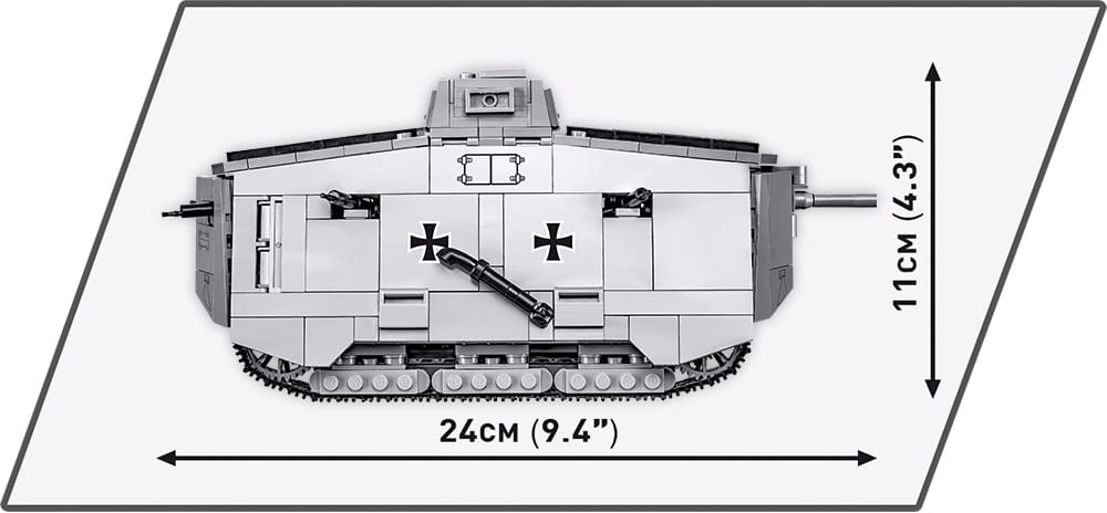 A7V to pierwszy niemiecki czołg z okresu Wielkiej Wojny. Łącznie wyprodukowano około 20 egzemplarzy, które pojawiły się na polach bitewnych u schyłku I Wojny Światowej. Ten wolno poruszający się pojazd pancerny borykał się z wieloma problemami technicznymi. Nie przeszkodziło mu to jednak zapisać się w historii broni pancernej i przechować swoją legendę aż do w XXI wieku! Załogę stanowiło około 18 żołnierzy. Na uzbrojeniu znalazła się armata Nordfeld kal.57 mm oraz 6 karabinów maszynowych MG wz. 08.