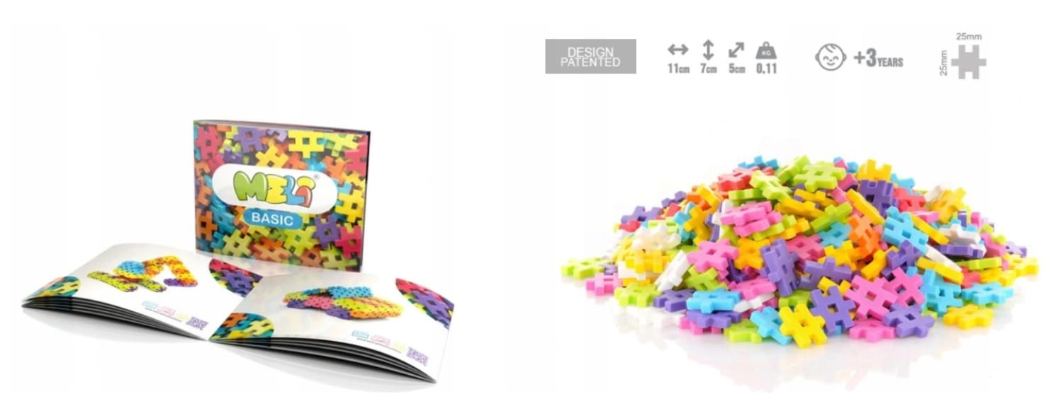 Seria MELI BASIC to gwarancja mądrej i rozwijającej zabawy genialnymi klockami, które pomogą odkryć Twojemu dziecku jego konstruktorskie zdolności. Elastyczne i przyjemne w dotyku klocki przypominające puzzle, przeniosą malucha w świat wyobraźni. Płaskie, jednolite elementy w przyjemnych kolorach z łatwością można ze sobą łączyć za pomocą specjalnych ząbków umożliwiających budowanie płaskich oraz przestrzennych form.