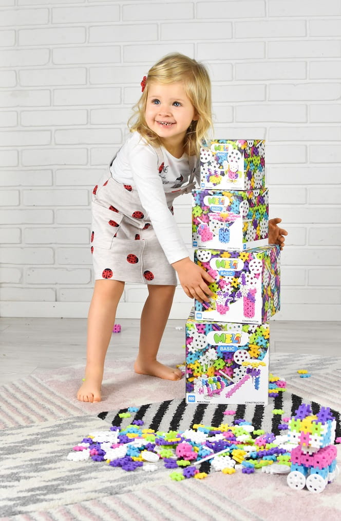 Seria MELI CONSTRUCTOR to zestawy, które pokochają zwinne paluszki i zmyślne główki, którym nie brak pomysłów. W przypadku chwilowego braku pomysłów możecie skorzystać z dołączonych książeczek z przykładami budowli, które można odwzorować.