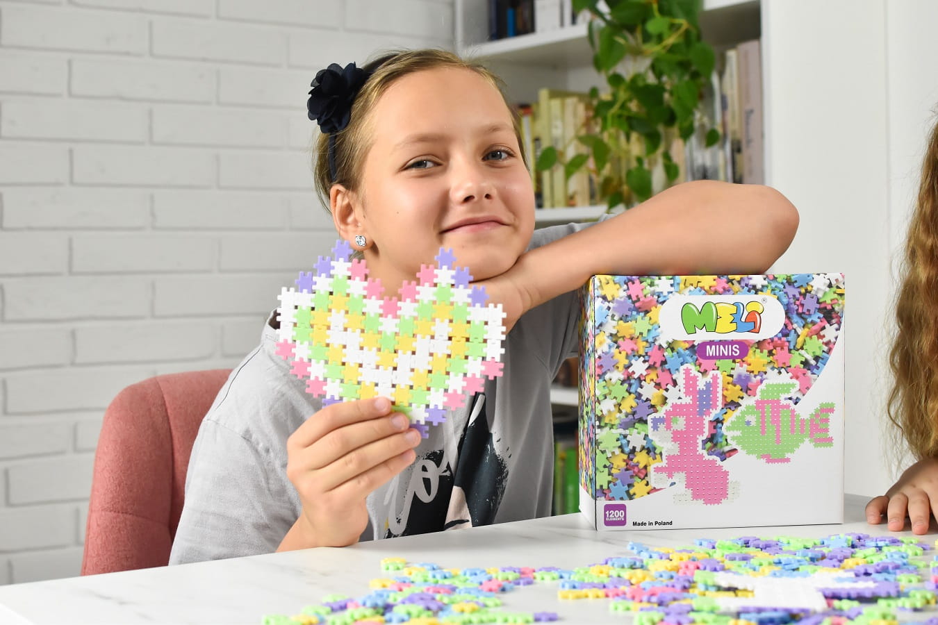 To niesamowita porcja zabawy podzielona na serie z różną zawartością od 200 do aż 2800 sztuk drobnych elementów! Fantazyjne obrazki, które powstają za pomocą tych drobnych, jednolitych kawałków zaprojektowanych na wzór puzzli o niewielkich rozmiarach, zaledwie 1,5X1,5 cm to prawdziwa frajda dla dzieciaków w wieku 3 plus. Dołączone ulotki z grafikami do odtworzenia, mogą na początek posłużyć jako inspiracja. Jednak seria nie ogranicza się tylko do płaskiego składania – można z niej tworzyć niesamowite przestrzenne budowle i kształty! Z dobrą zabawą łączy się misja edukacyjna serii MINIS – to rozwijanie inteligencji, orientacji przestrzennej, nauka rozpoznawania kolorów i rozwijanie zdolności manualnych dzieci.