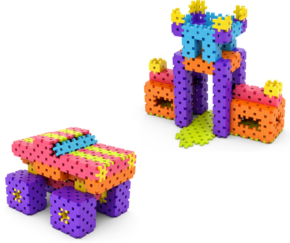 Płaskie, jednolite elementy w przyjemnych kolorach z łatwością można ze sobą łączyć za pomocą specjalnych ząbków umożliwiających budowanie płaskich oraz przestrzennych form. Konstrukcję łatwo zdemontować i uprzątnąć, gdyż klocki nie posiadają zatrzasków, zaczepów ani innych trudnych do rozmontowania części.
