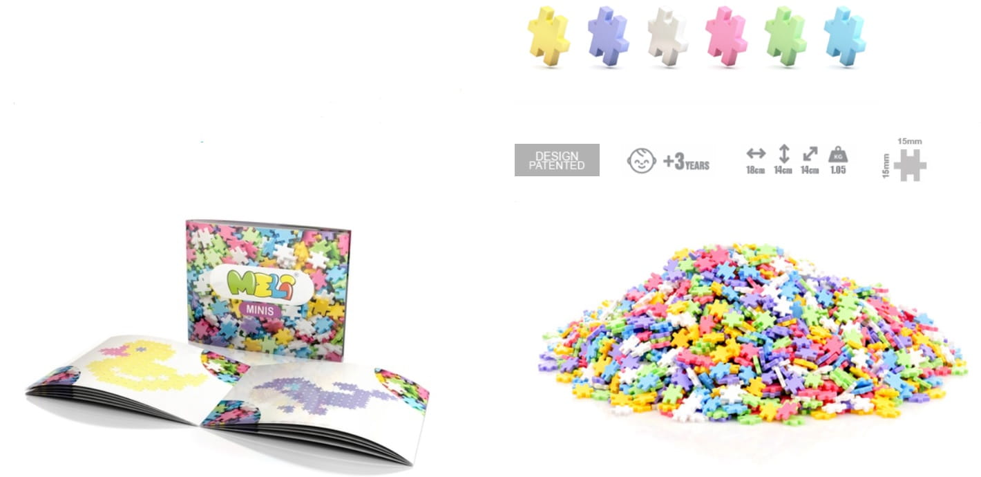 Z tak wielu elementów powstać może mozaika przedstawiająca koparkę, jednorożca lub samolot, ale pamiętajcie, że to tylko niewielki zarys możliwości tworzenia z zestawem MELI MINIS 2500.