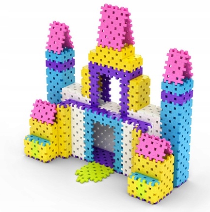 Co można z nich zbudować? Całkiem spory zamek obronny z dziedzińcem, monster trucka, wehikuł czasu lub …całe miasteczko! Tylko od wyobraźni dziecka zależy, w jaki kształt zamienią się podobne do puzzli płaskie elementy, łatwe w łączeniu jak w i demontażu. Tak duży zestaw zajmie dziecko na długie godziny, pozwoli też włączyć się w zabawę rodzicom i rodzeństwu. Im więcej uczestników zabawy – tym więcej pomysłów i radości ze wspólnego tworzenia!