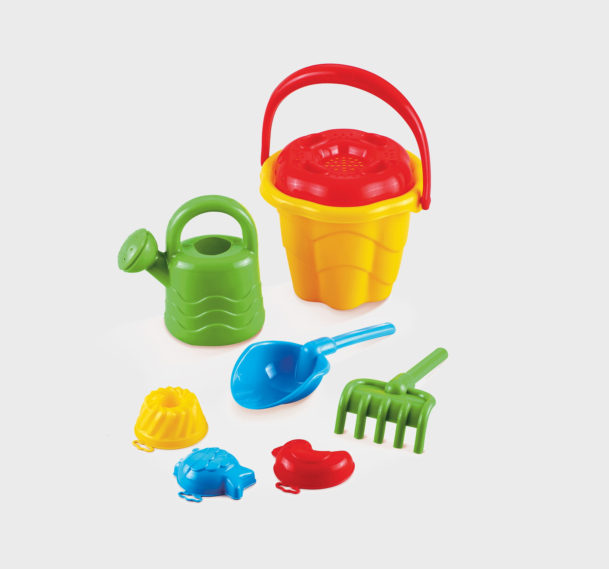 Dołączone akcesoria w postaci szpadelka, grabek, foremek, sitka oraz konewki są nie odłącznym elementem wspaniałej zabawy w piasku