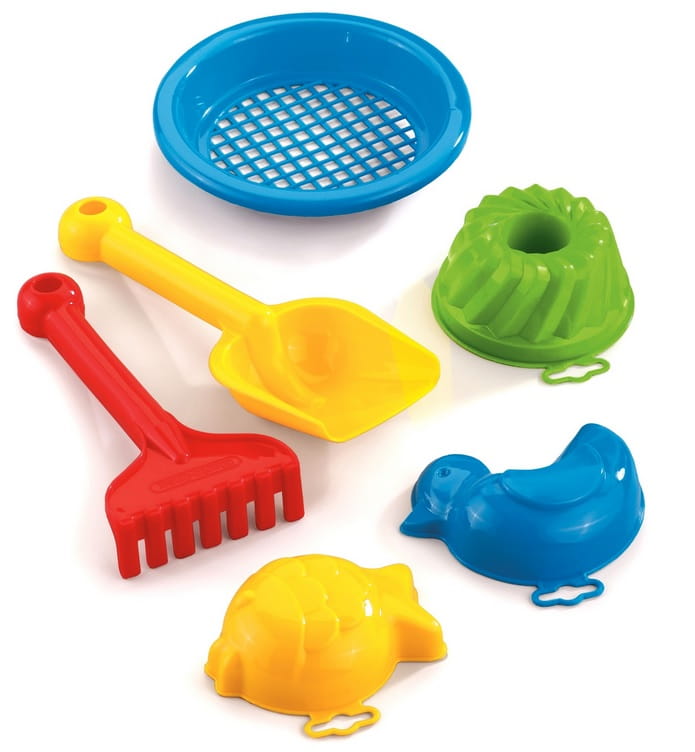 Komplet do piasku Sitko, Grabki, Łopatka, 3 Foremki Marioinex