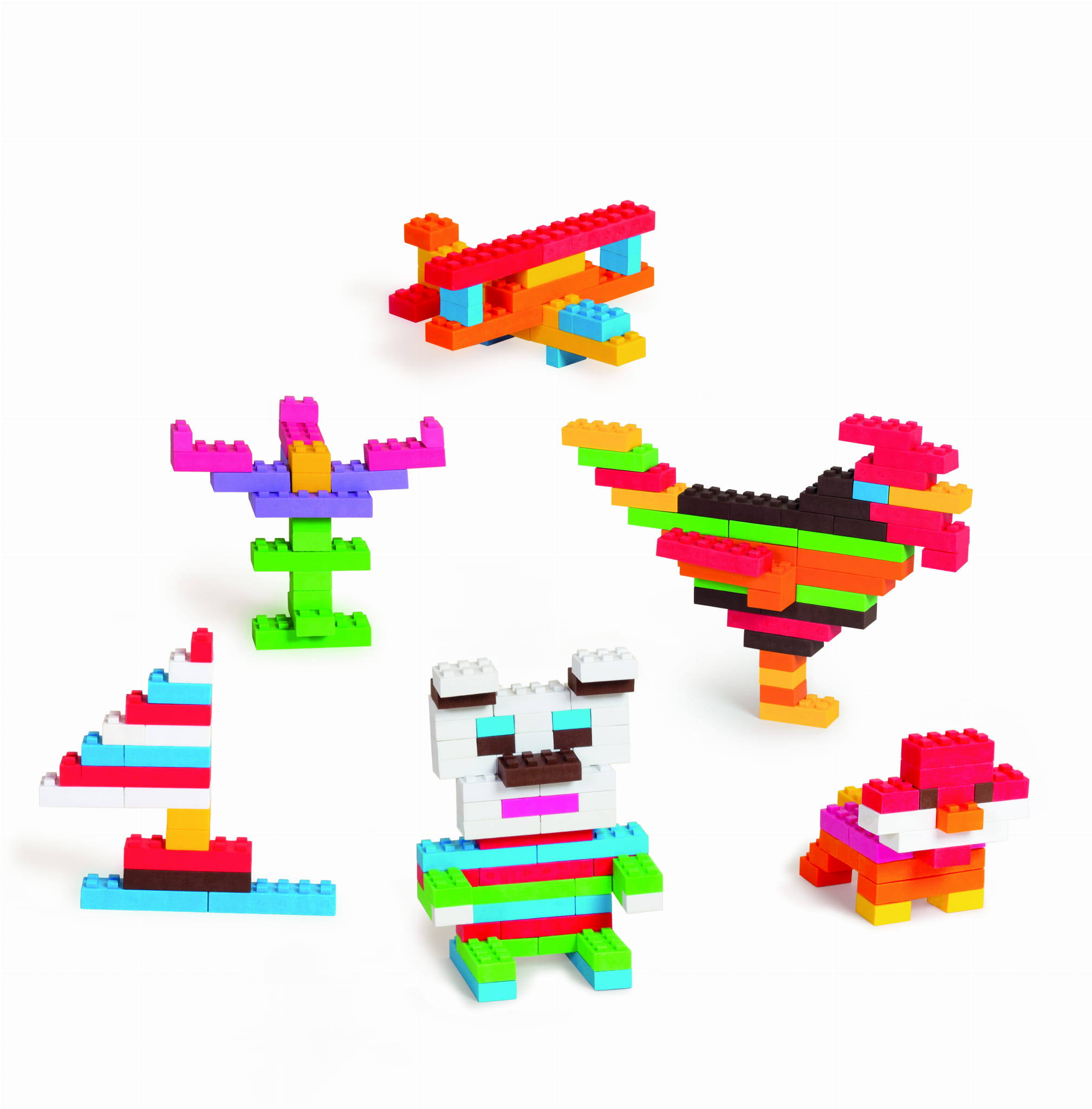 Oto klocki, na które od dawna czekały wszystkie dzieci! Z wyglądu przypominają klasyczne klocki, jednak zostały wytworzone z miękkiego i elastycznego materiału, dzięki któremu zabawa nimi jest niezwykle przyjemna, bezpieczna i cicha. Faktura klocków daje dzieciom cenne doświadczenia sensoryczne, a ich zróżnicowane kształty pozwalają na wykonanie najróżniejszych form przestrzennych zgodnie z dołączonymi do zestawu inspiracjami lub według własnego pomysłu. Zestaw składa się z aż 115 elementów. Rozwija kreatywność, psychomotorykę i uczy logicznego myślenia.