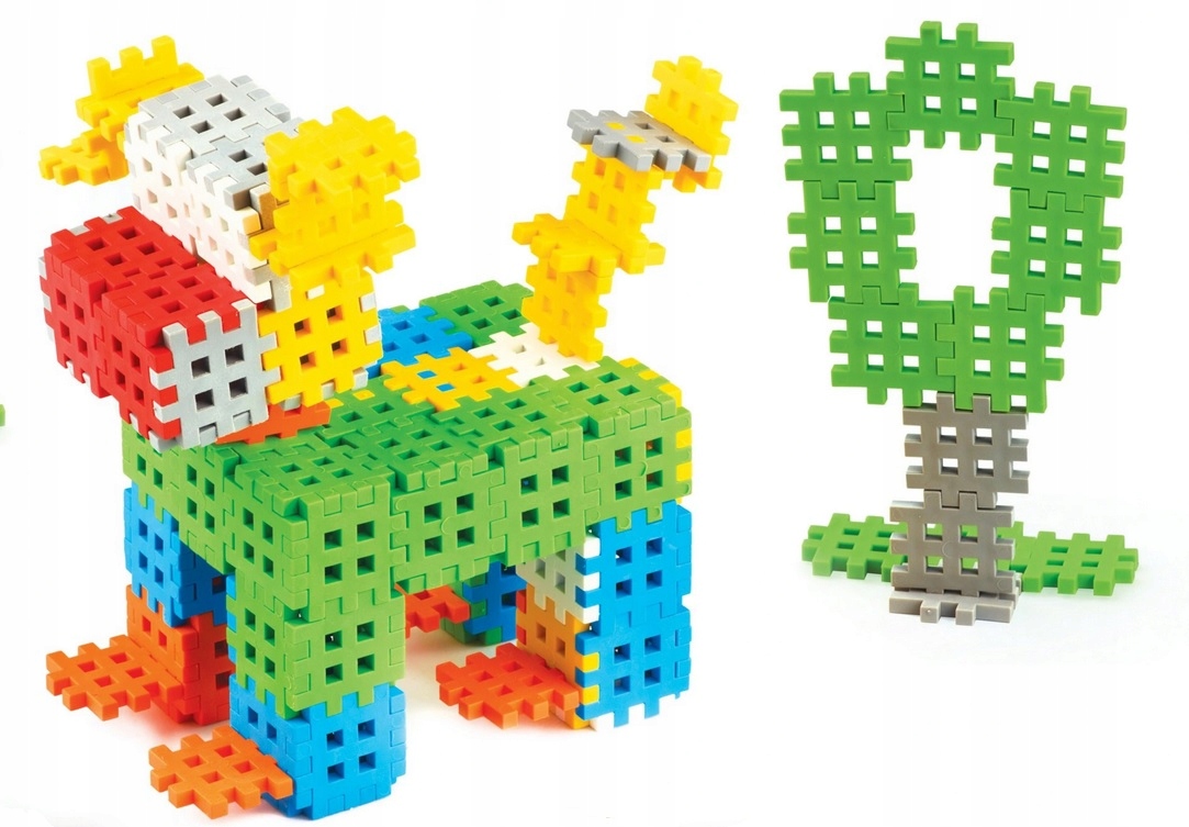 Dzieci mogą tworzyć nowe budowle o znacznie mniejszym formacie niż poprzednie klocki Wafle, dzięki temu nasze pociechy nie muszą się martwić o zagospodarowanie większej przestrzeni.
