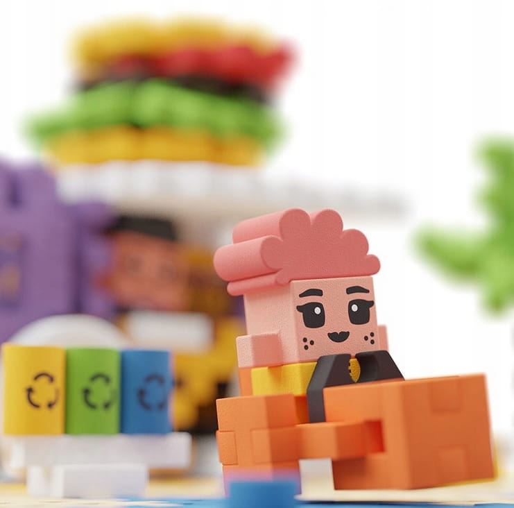 Zestaw Food Truck składa się ze 148 elementów i dwóch nowych postaci. Wciel się w rolę restauratora Jacka i serwuj gościom najlepsze potrawy. Połącz zestaw z innymi z serii WaffleCity i powiększ miasteczko o strefę restauracyjną. Złóż zestaw według instrukcji lub uruchom wyobraźnię swojego dziecka i skonstruuj z nim własną, unikalną restaurację!