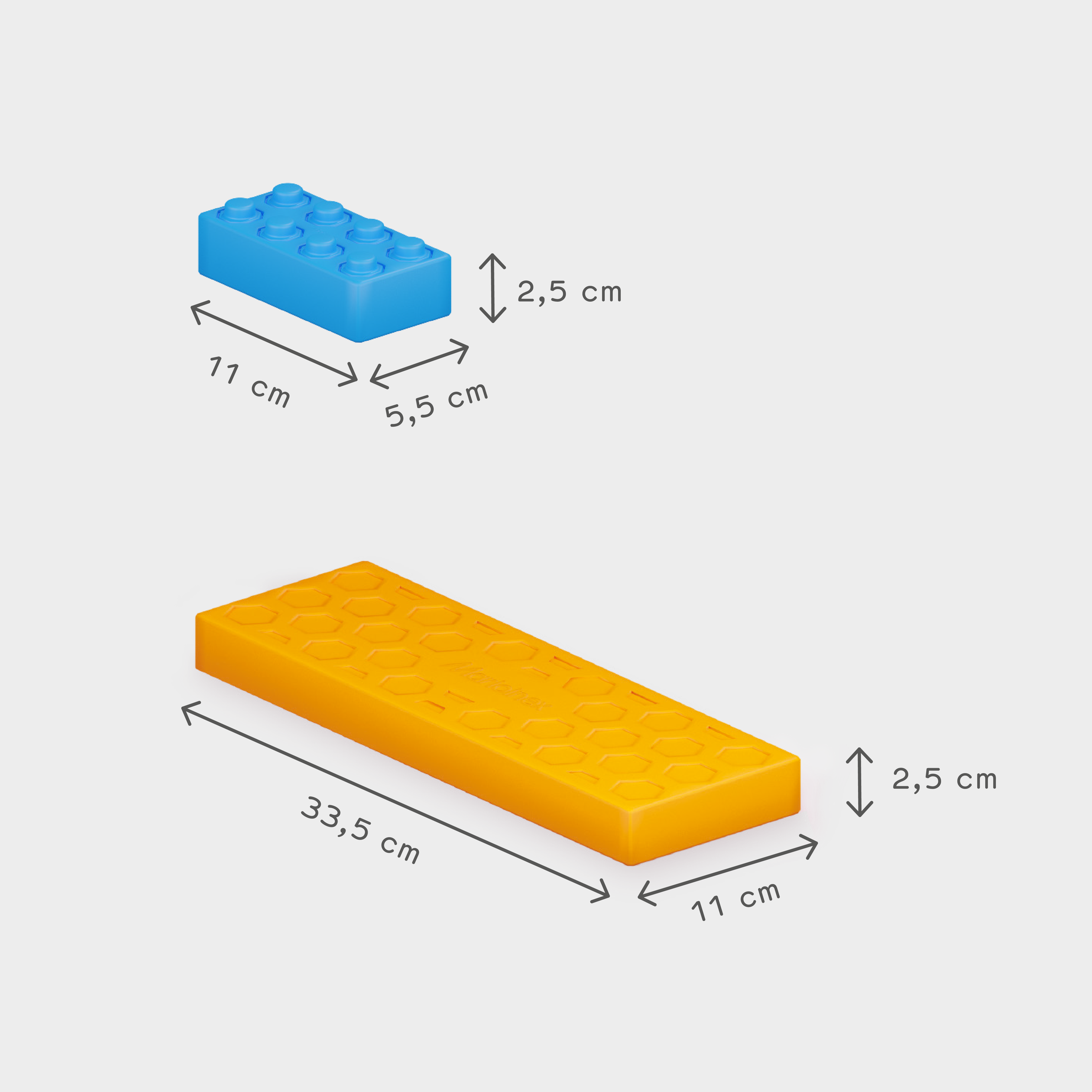 Platformy dydaktyczne łączą się z innymi zestawami z serii MARIOINEX CEGŁA JUNIOR. Dzięki nim dzieci tworzą tunele, garaże i przeróżne piętrowe konstrukcje.