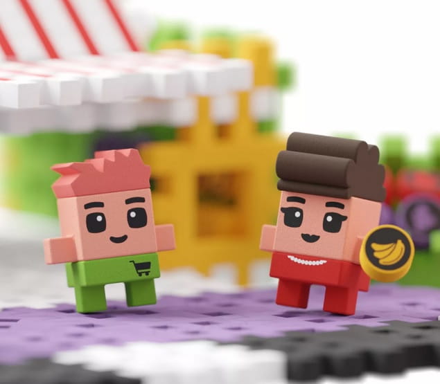 Zestaw Sklepik to aż 148 klocków i dwie oryginalne postaci, z których jedna w pocie czoła zaopatruje mieszkańców w świeżą żywność. Zbuduj zestaw według instrukcji i połącz go z innymi zestawami z serii Waffle City, które wspólnie sprawią, że miasteczko ożyje. Oczywiście nie bez pomocy Twojej wyobraźni! A kiedy wraz z pociechą wpadniecie na nowy pomysł, możecie skonstruować z elementów zestawu zupełnie nową, fascynującą budowlę.