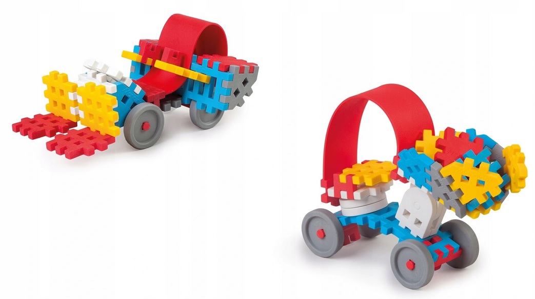 Dzieci mogą tworzyć nowe budowle o znacznie mniejszym formacie niż poprzednie klocki Wafle, dzięki temu nasze pociechy nie muszą się martwić o zagospodarowanie większej przestrzeni.