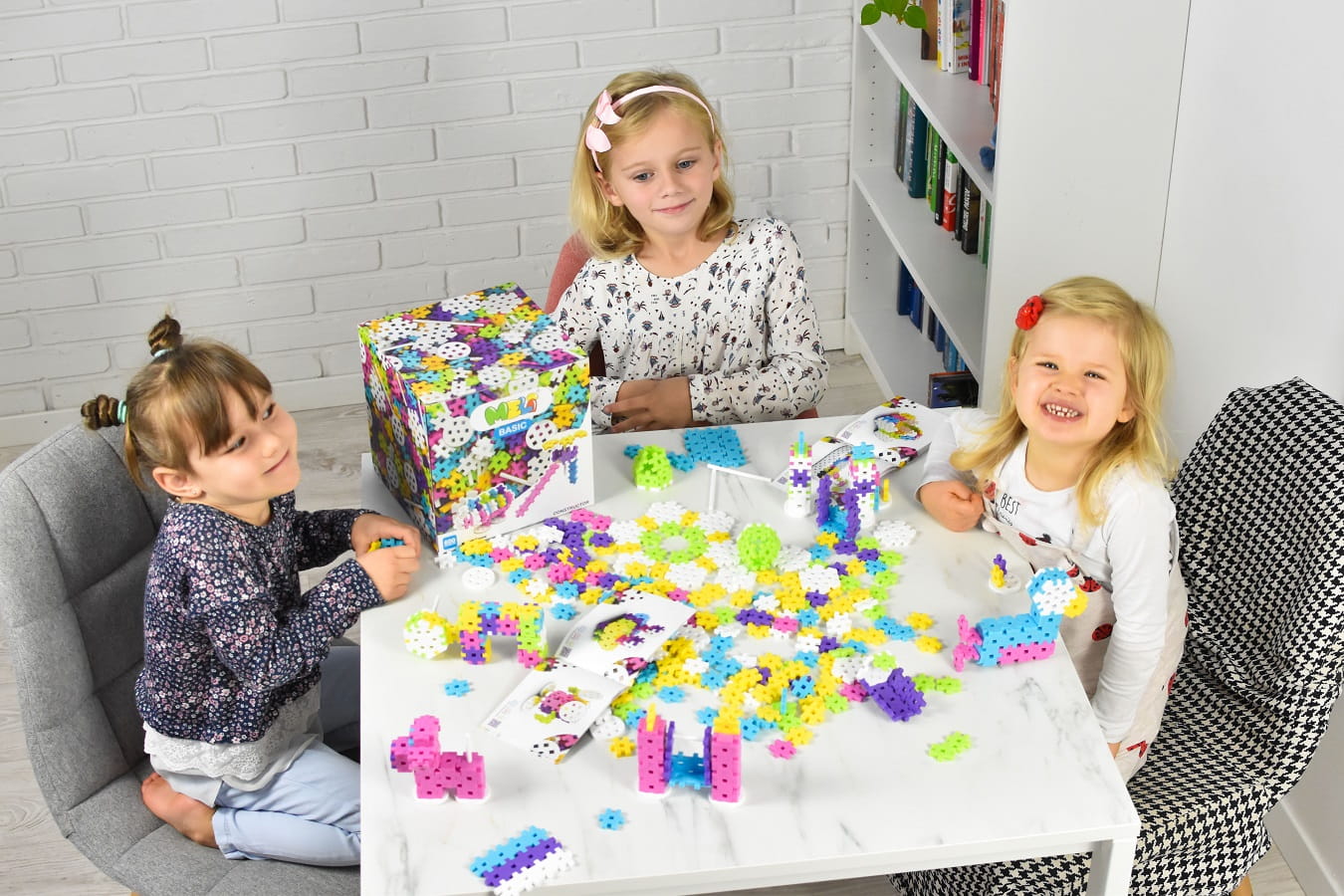 Co można z nich zbudować? Całkiem spory zamek obronny z dziedzińcem, monster trucka, wehikuł czasu lub …całe miasteczko! Tylko od wyobraźni dziecka zależy, w jaki kształt zamienią się podobne do puzzli płaskie elementy, łatwe w łączeniu jak w i demontażu. Tak duży zestaw zajmie dziecko na długie godziny, pozwoli też włączyć się w zabawę rodzicom i rodzeństwu. Im więcej uczestników zabawy – tym więcej pomysłów i radości ze wspólnego tworzenia!