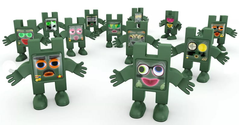 Komplet figurek z zabawnymi buźkami zapewnia inspirującą zabawę całą armią niewielkich zabawek.