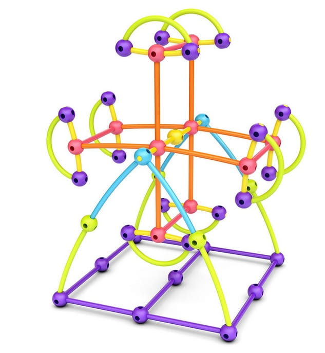 Kulki mają po 6 otworów, dzięki czemu łatwo sczepiają elementy pod różnym kątem – co pozwala na tworzenie niebywale ciekawych konstrukcji.