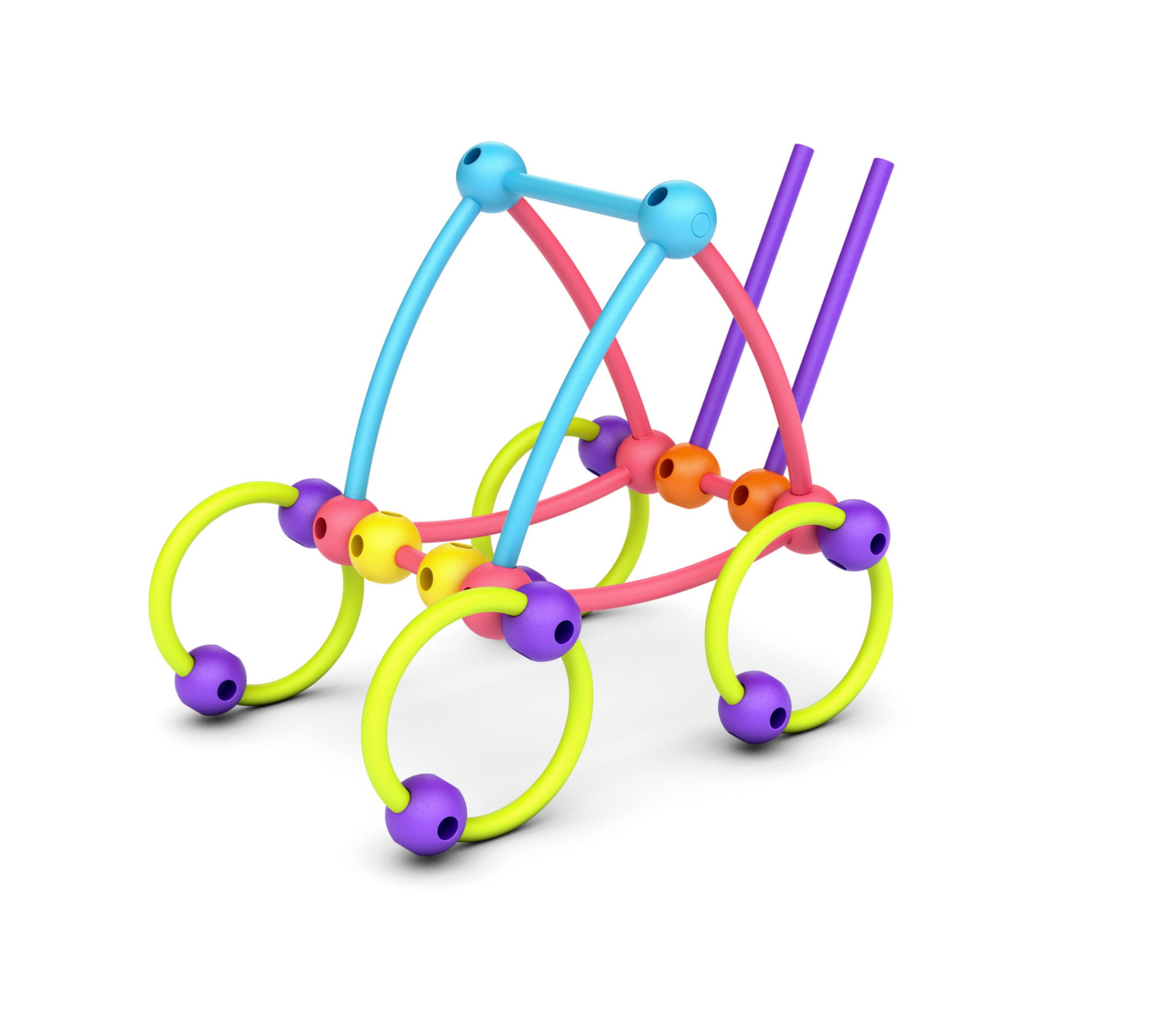 Choć elementy są niebywale proste – giętkie patyczki, które łączy się za pomocą kulek z otworami – zabawa w budowanie skomplikowanych konstrukcji wciąga na długie godziny.