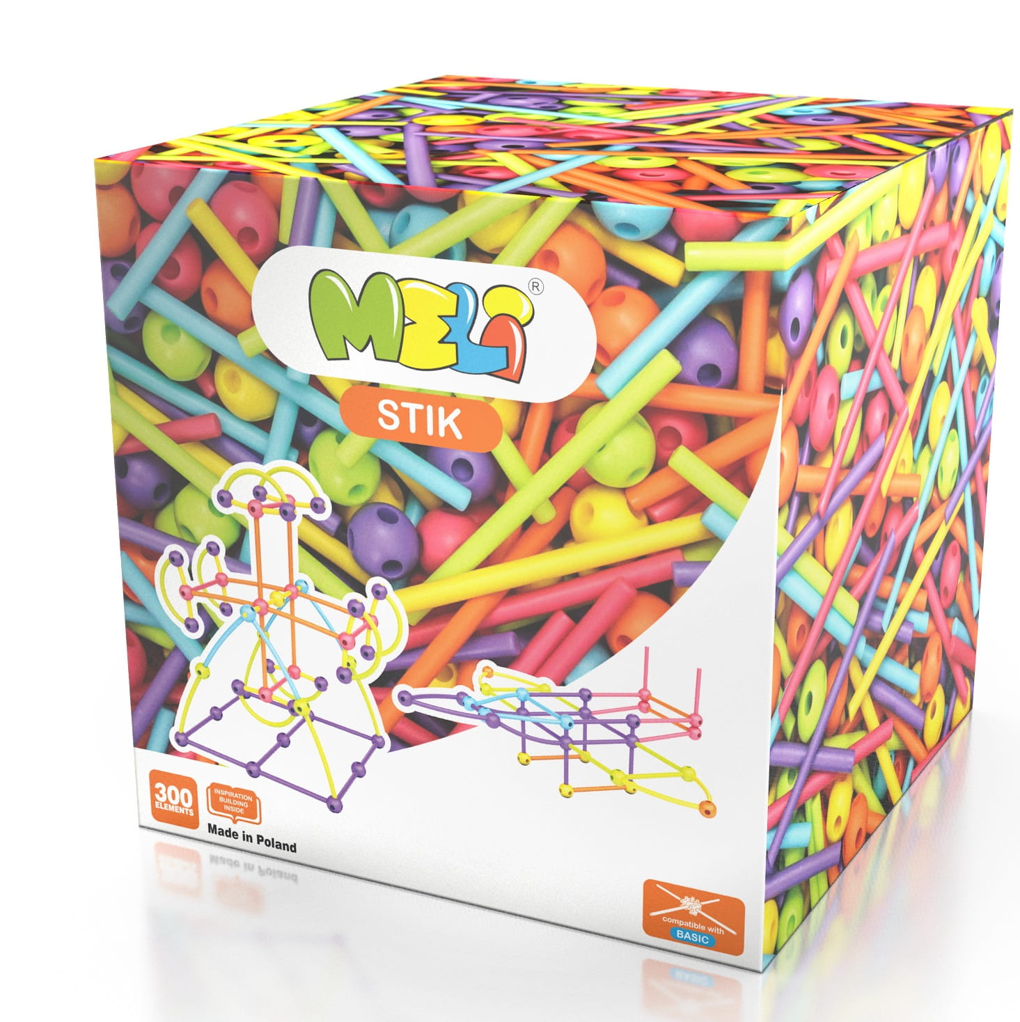 Jeszcze więcej uciechy ze składania zapewnia kompatybilność Meli Stik z klockami Meli Basic!