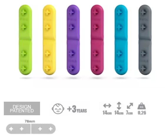 Mublo to oryginalne klocki konstrukcyjne o jednakowym wyglądzie. Płaskie paseczki mają zaokrąglone brzegi, są więc w stu procentach bezpieczne dla maluchów. Każdy element wyposażony jest w cztery zaczepy z jednej strony i cztery otwory z drugiej. Taki kształt umożliwia łatwe sczepianie części i prosty demontaż.